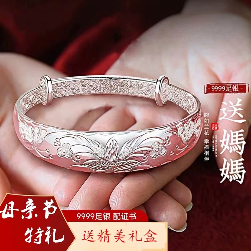 妈妈款纯银手镯女999实心镯子见面礼生日送妈妈奶奶婆婆长辈礼物