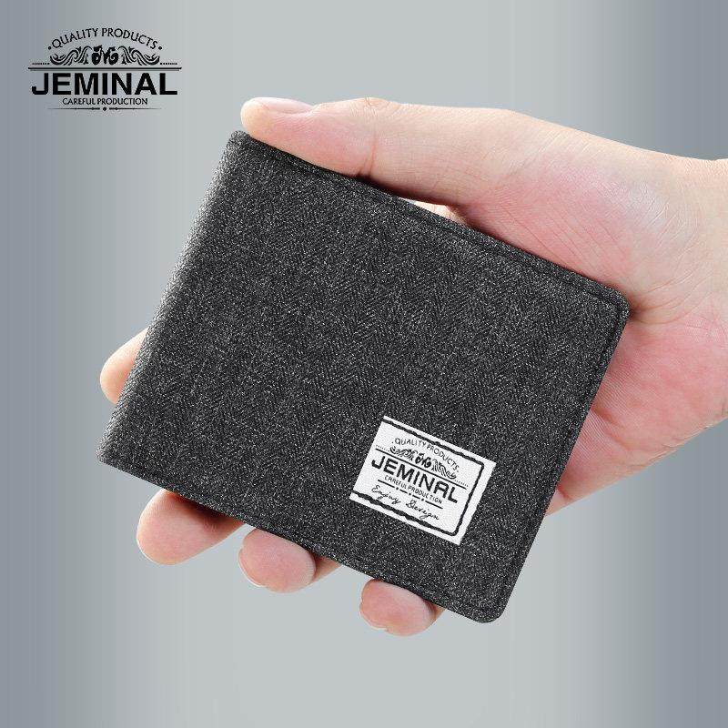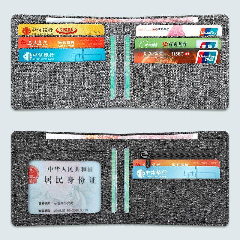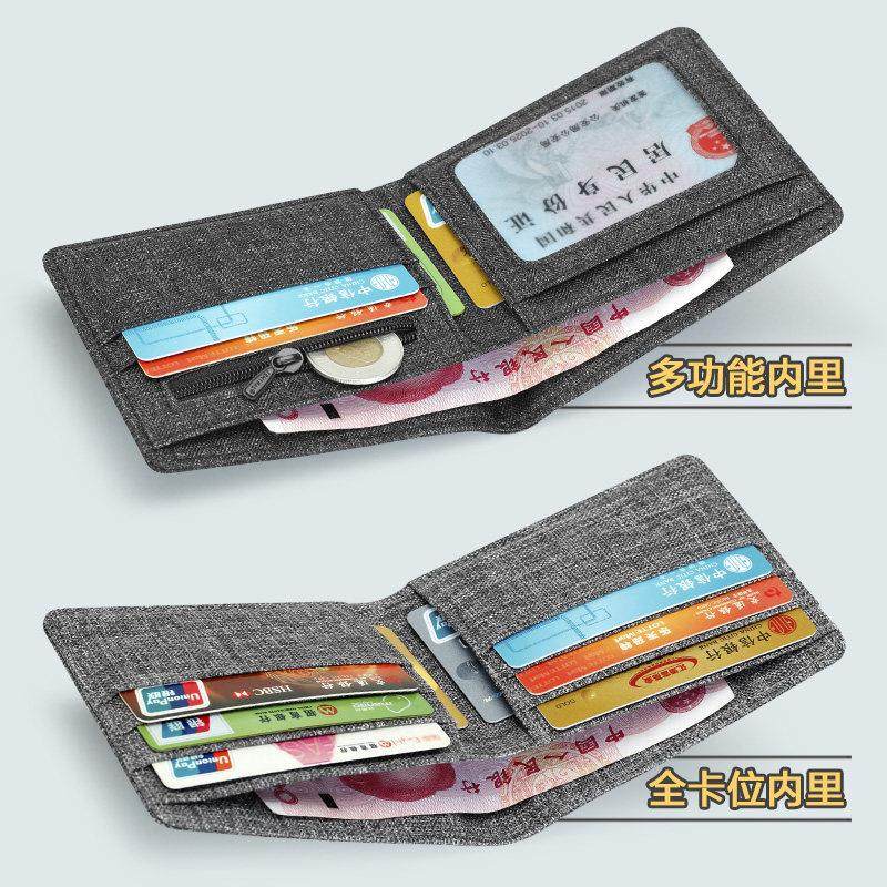 男超薄帆布短款小钱包男生简约小众钱包卡包学生对折叠小巧布钱夹