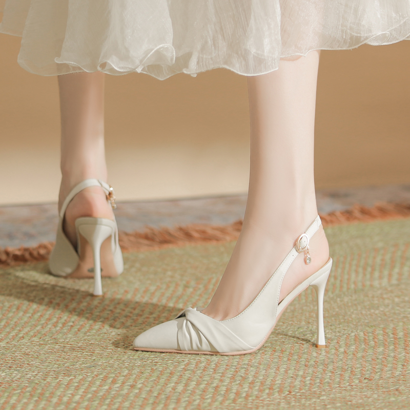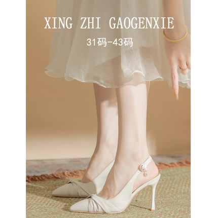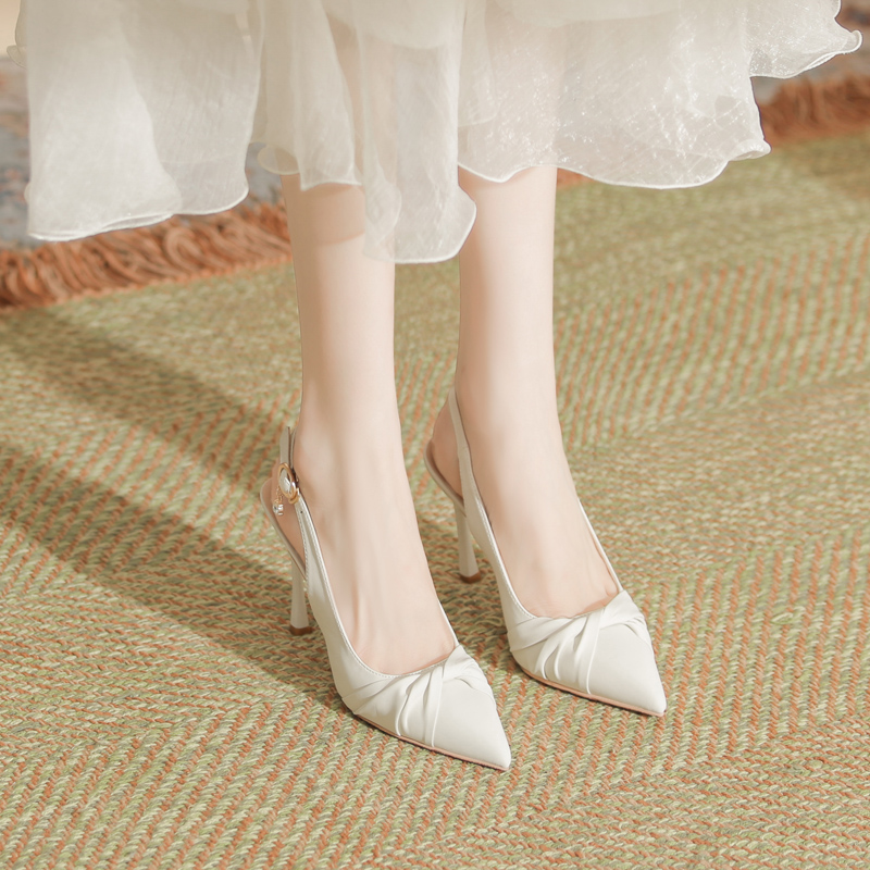 尖头白色高跟鞋配裙子性感后空绊带细跟职业单鞋法式包头凉鞋女夏
