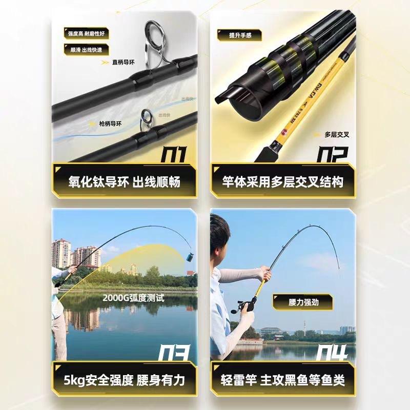 新款光威CA小黄竿 XH调2.4米碳素路亚竿打黑鱼竿路滑竿锚鱼竿
