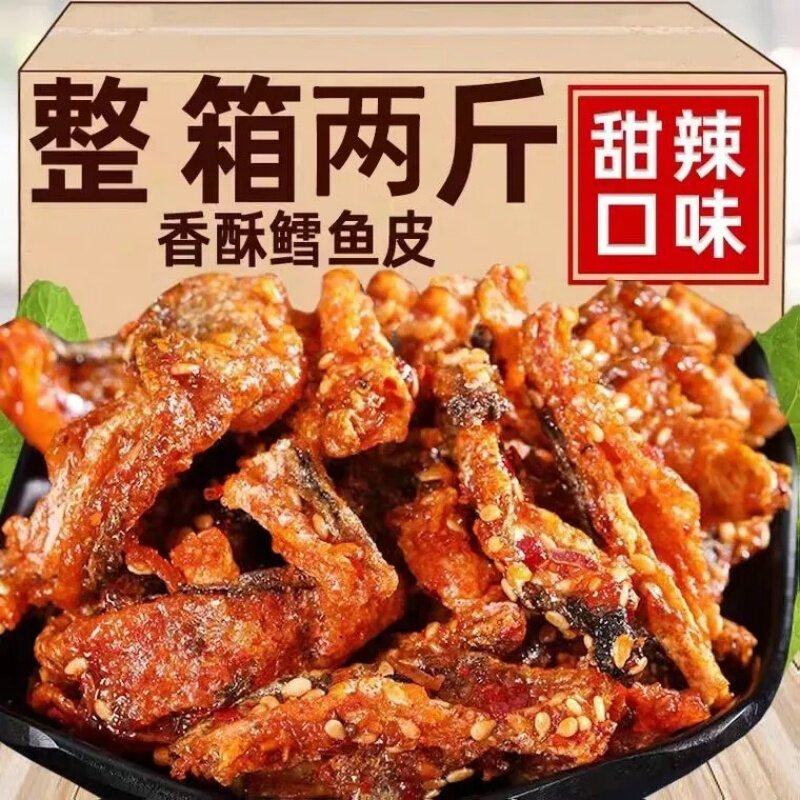 香辣鱼皮开袋即食甜辣鳕鱼皮下饭菜熟食海鲜炸鱼皮办公室解馋零食