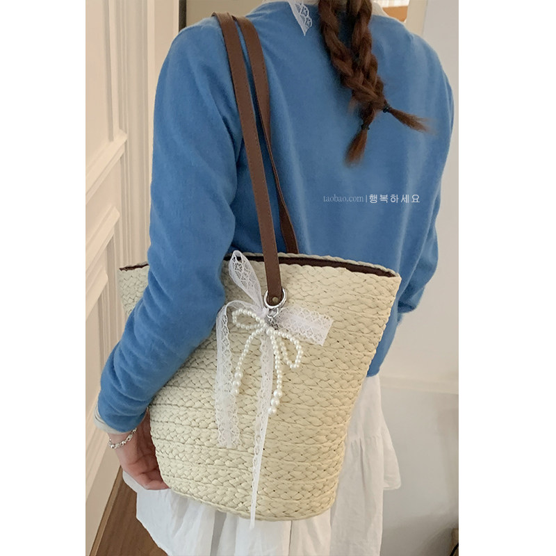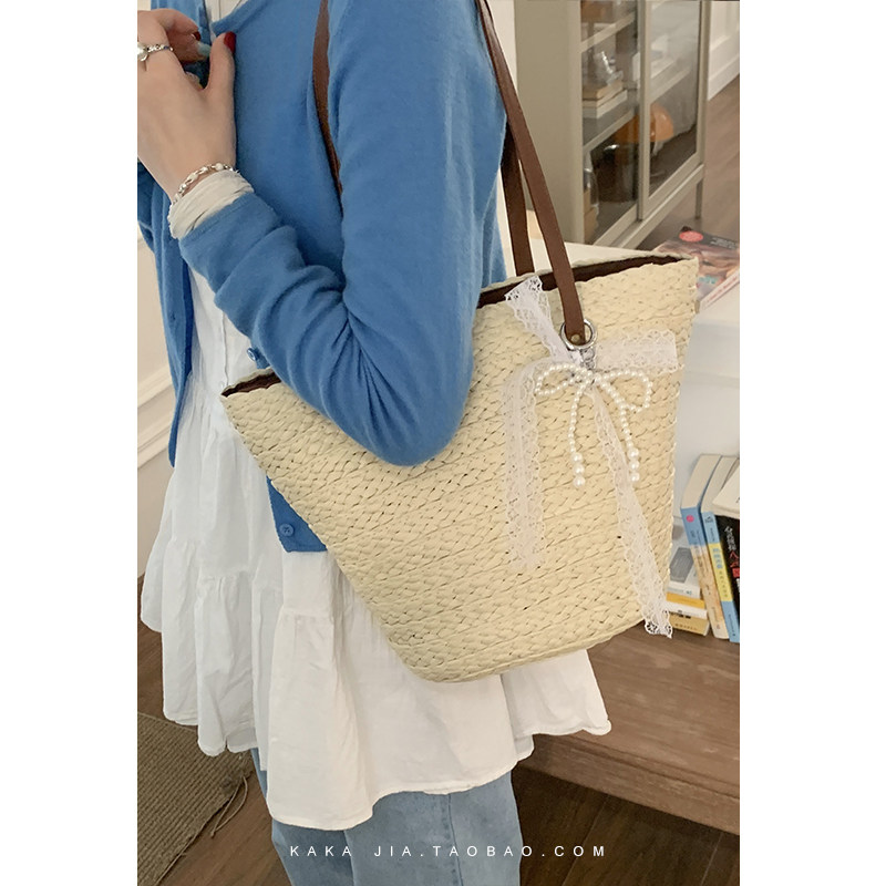 森系草编包女包包2025新款潮时尚托特包大容量单肩编织包菜篮包