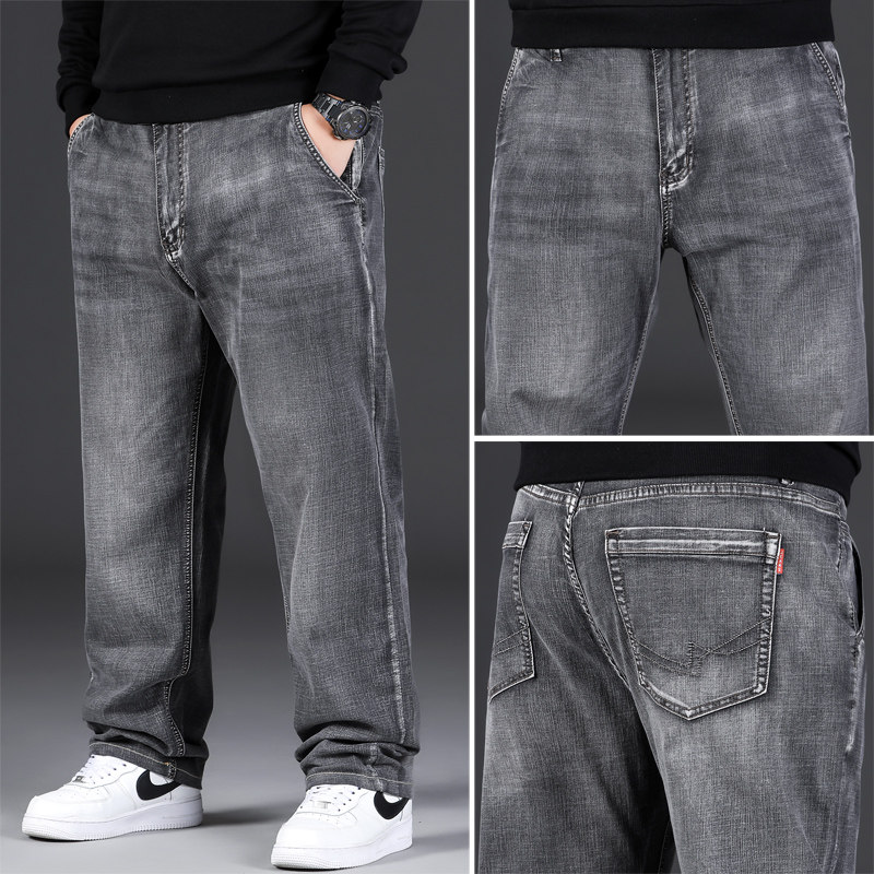深蓝色秋冬款牛仔裤男宽松直筒加肥加大码胖子肥佬深档弹力中年潮