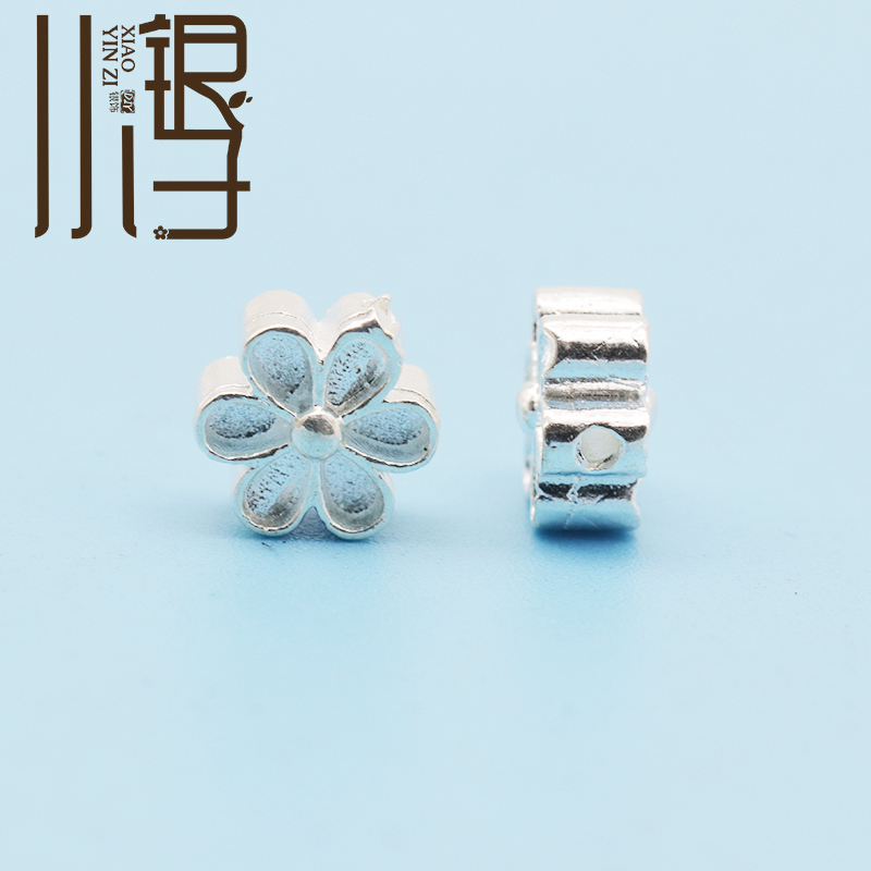 素银小花隔珠 四叶草桃花雪花水晶手链DIY串珠材料 S925纯银配件