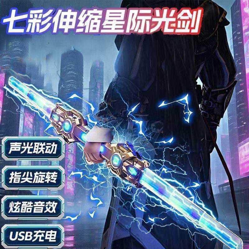 网红新款双刃伸缩光剑儿童玩具发光宝剑男孩炫酷双头激光剑声光剑