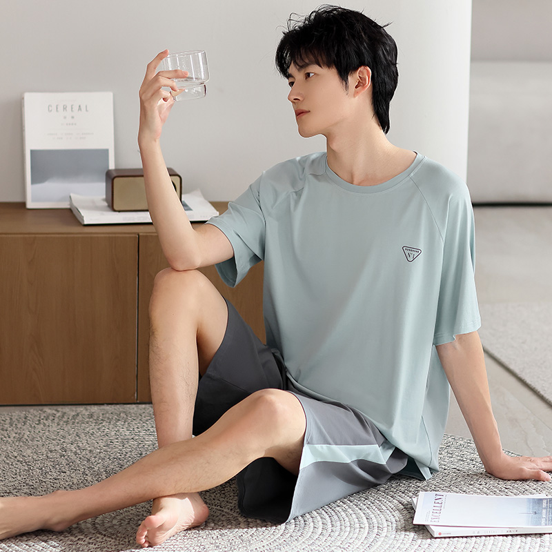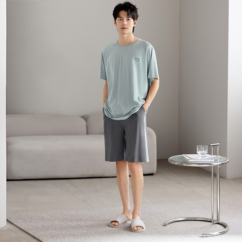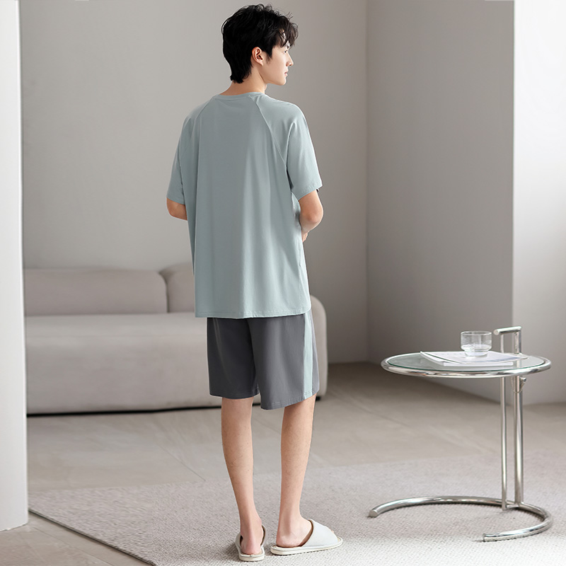 洁丽雅睡衣男款2025新款春夏季短袖纯色大码休闲可外穿家居服套装