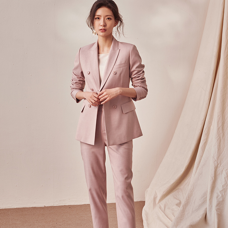 罗衣时尚职业粉色西装套装女2025春夏新款外套直筒裤两件套09373