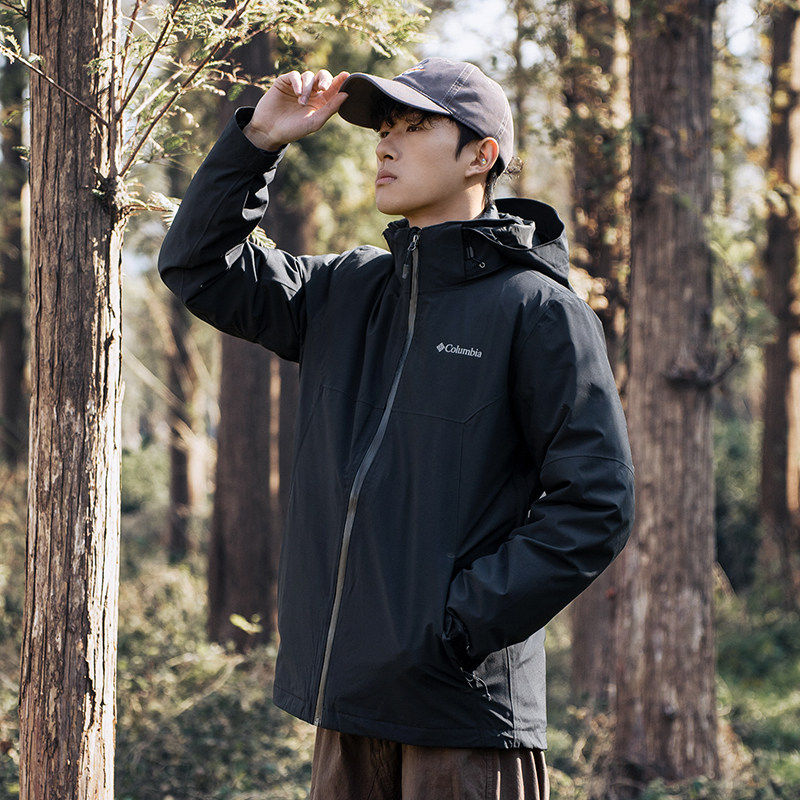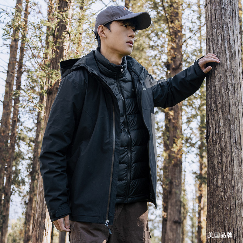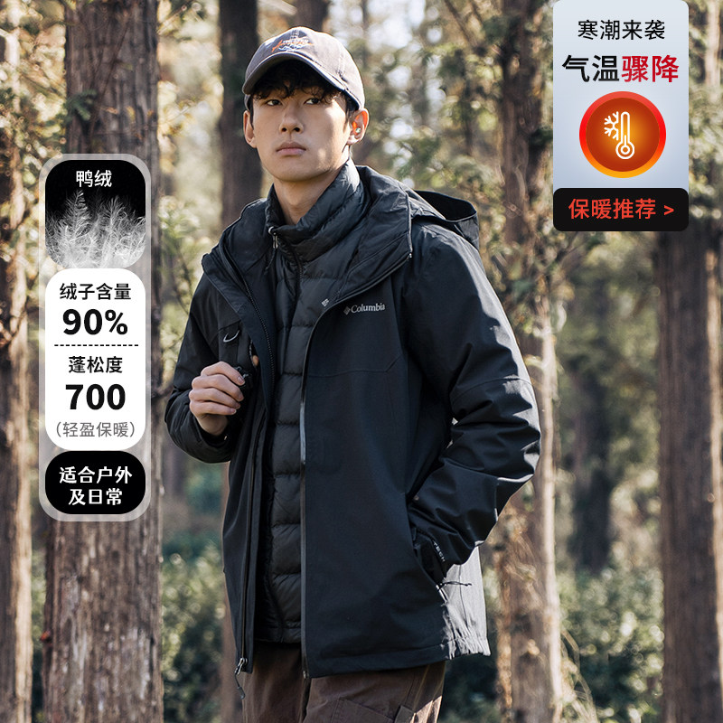 【自营】哥伦比亚男羽绒三合一冲锋衣新款连帽夹克户外运动服外套