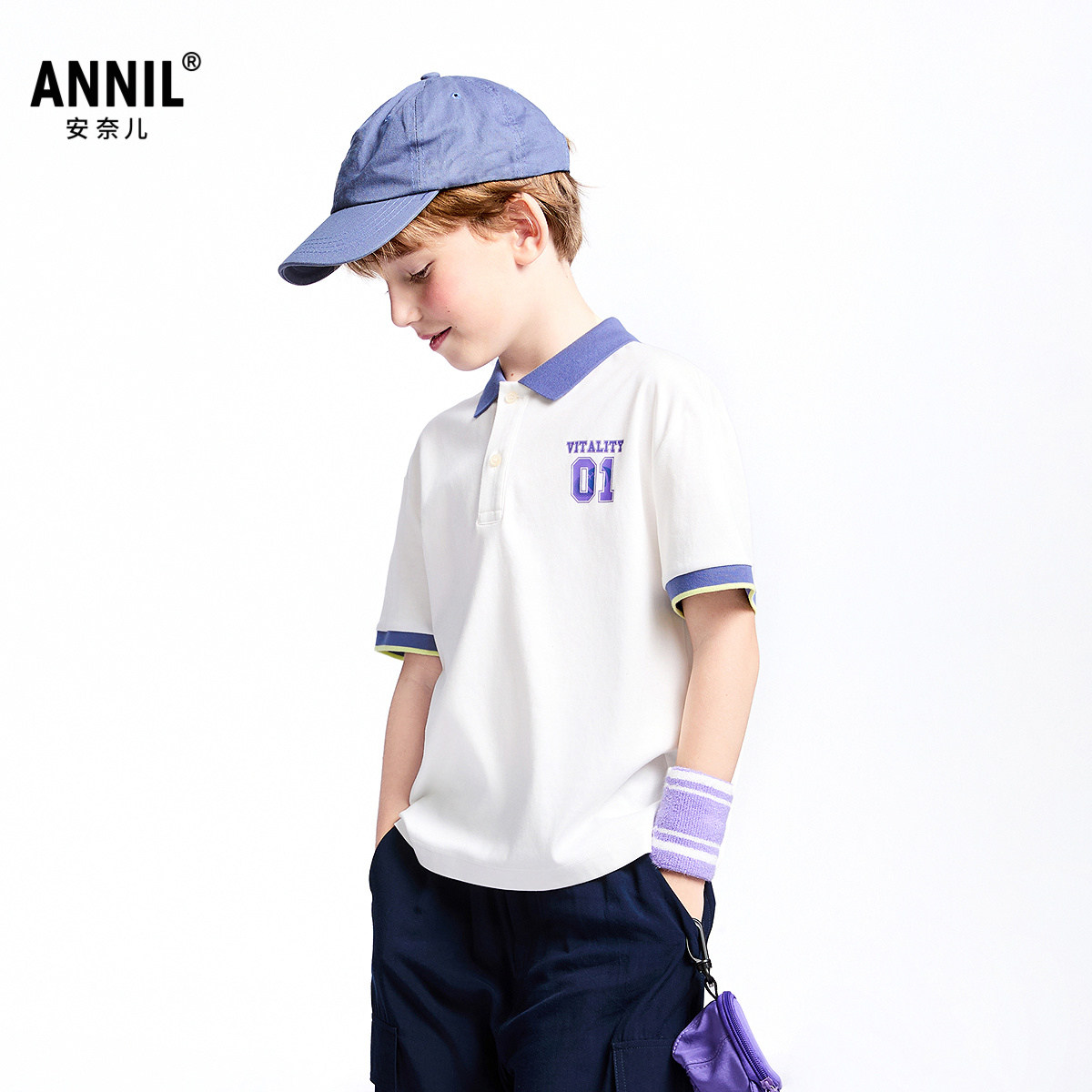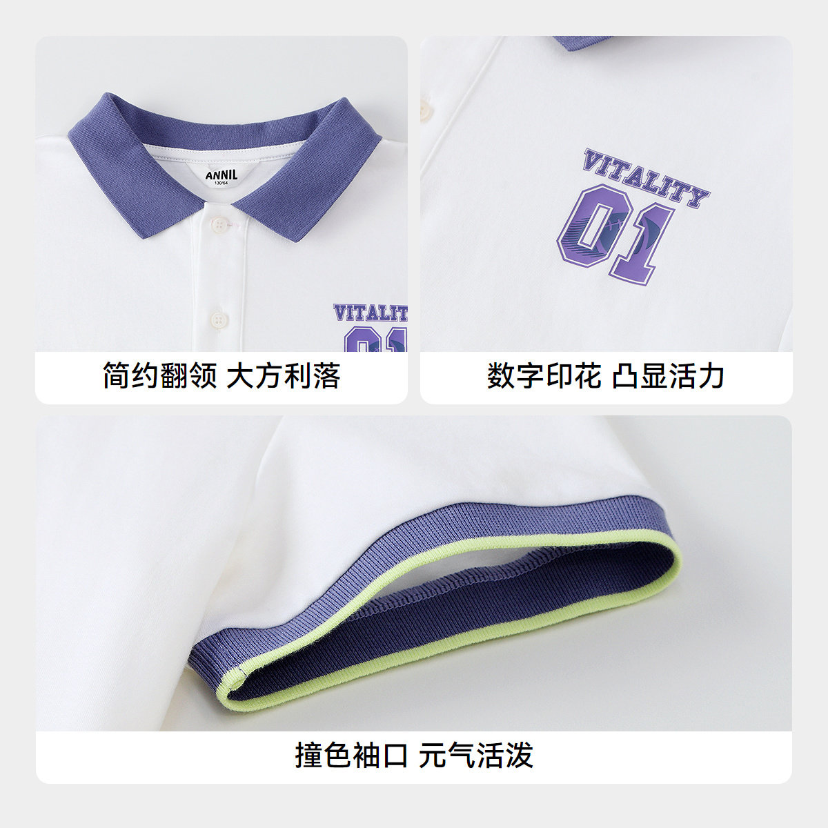 【商场同款】安奈儿男童翻领短袖POLO衫夏新款纯棉AB521623