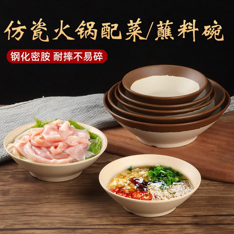 密胺仿土陶火锅餐具复古火锅店配菜盘虾滑盘鸭肠盘市井火锅蘸料碗