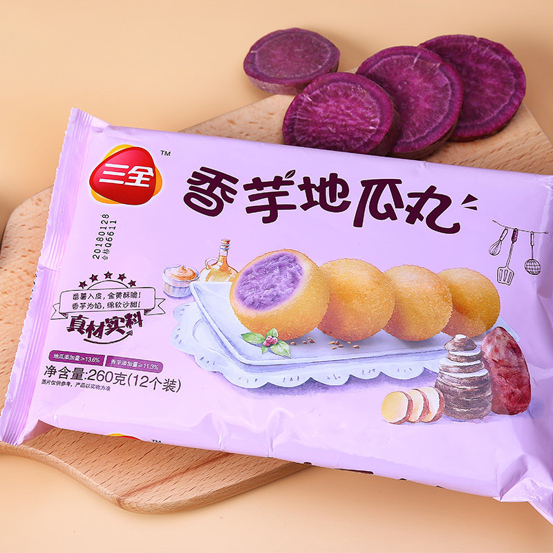 三全香芋地瓜丸家用豆沙芝麻球油炸炸货小吃速食半成品早餐紫薯球