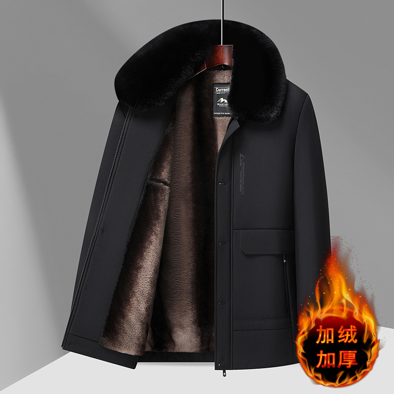 送父亲加绒加厚毛领棉衣季新款男装中老年商务休闲爸爸装外套