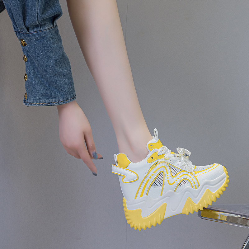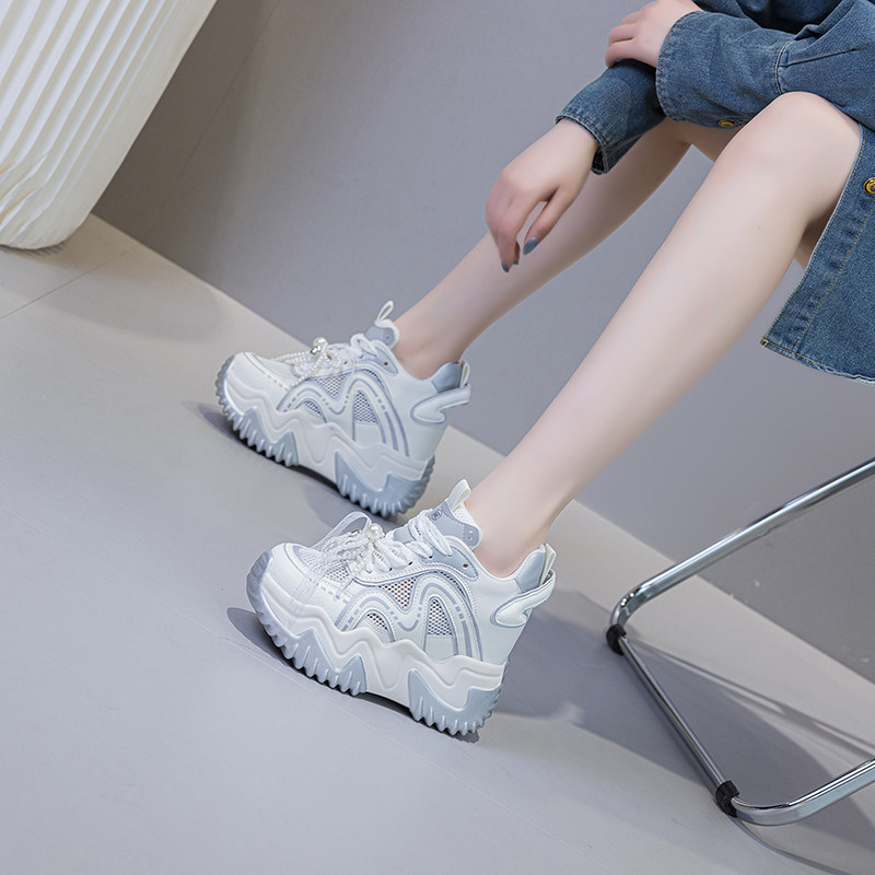 震地王镂空老爹鞋女12cm小个子休闲春夏新款透气厚底内增高网鞋潮