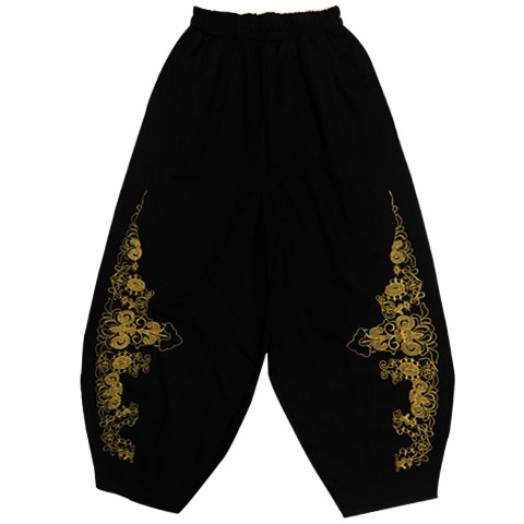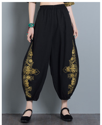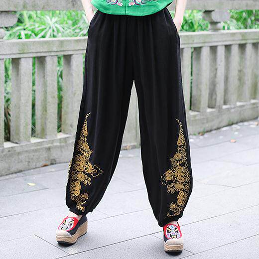 包邮 民族风特色刺绣九分裤女 夏季松紧腰灯笼裤 松紧哈伦裤 棉麻