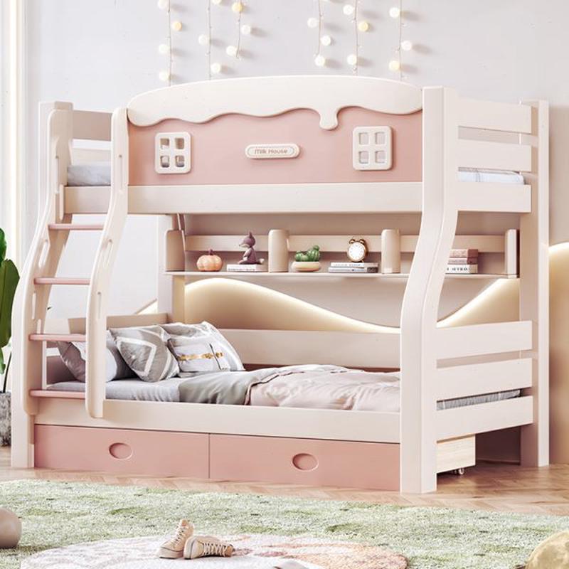 上下床双层床全实木高低床小户型女孩公主子母床上下铺木床儿童床