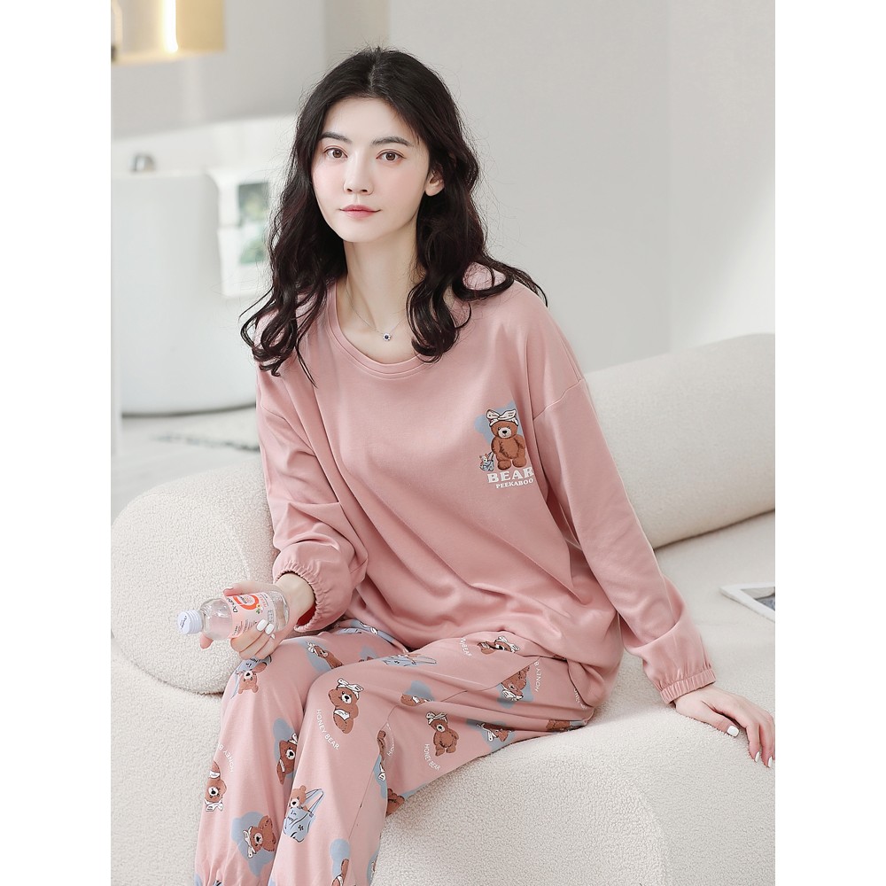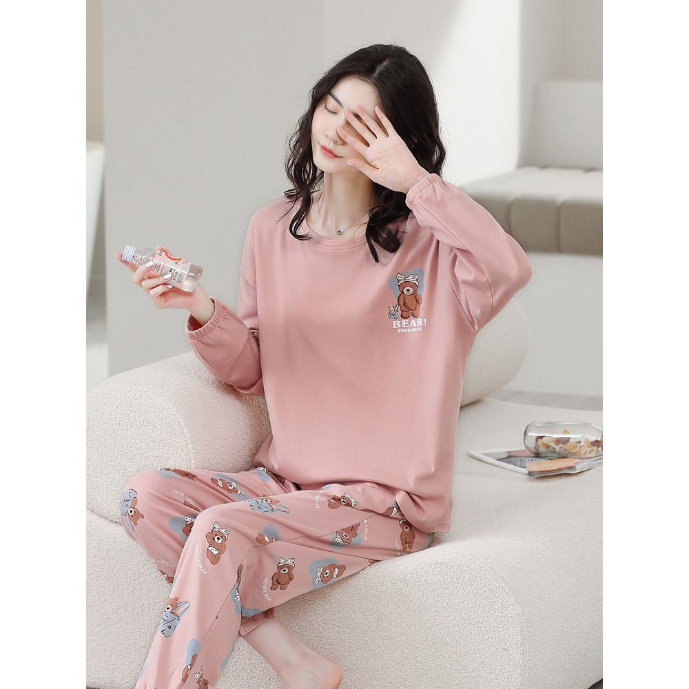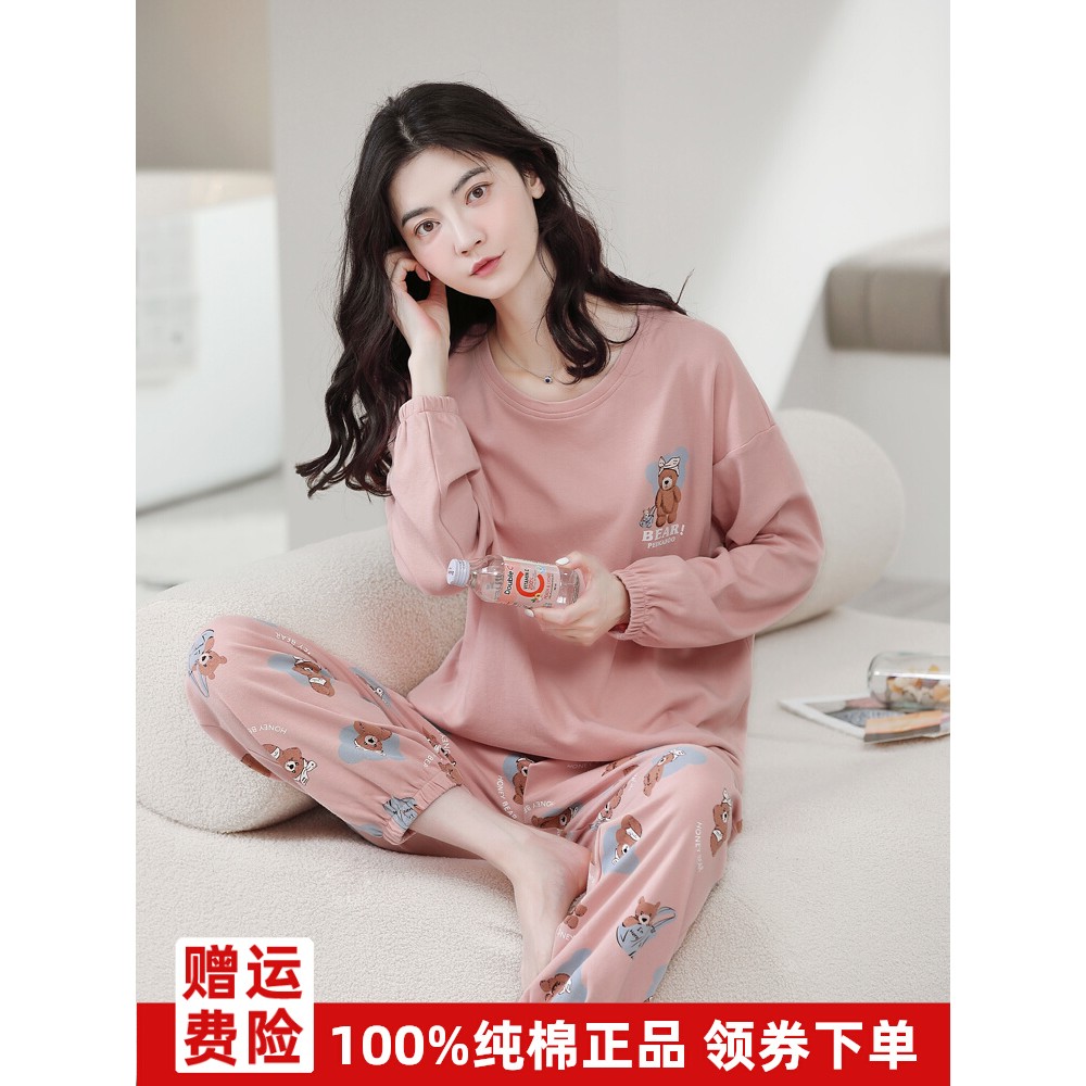 芬腾休100%纯棉睡衣女春秋季2025年新款长袖束脚家居服可外穿套装