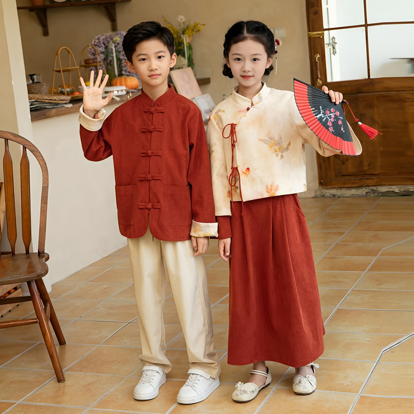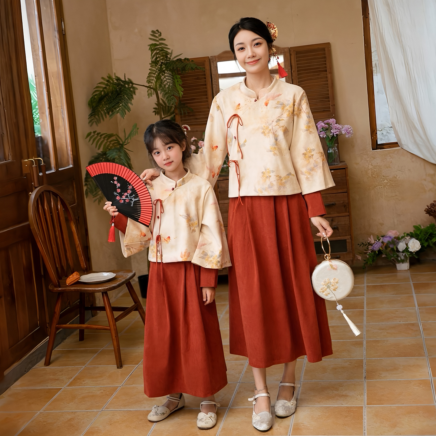 新中式亲子装2025秋冬一家三口国风母女装高端儿童唐装汉服表演服