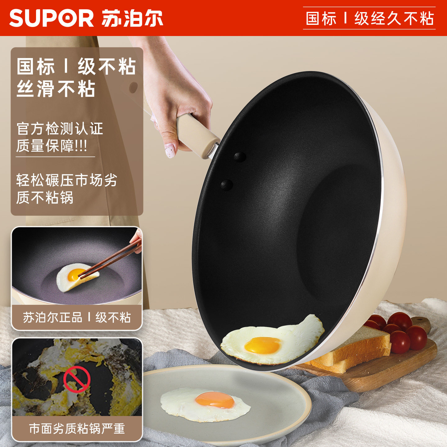 苏泊尔不粘锅炒锅家用抗菌炒菜锅不沾电磁炉专用燃气灶煎炒平底锅