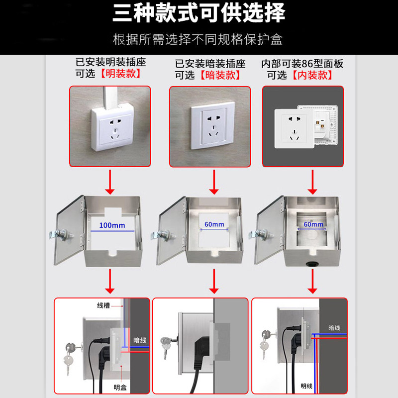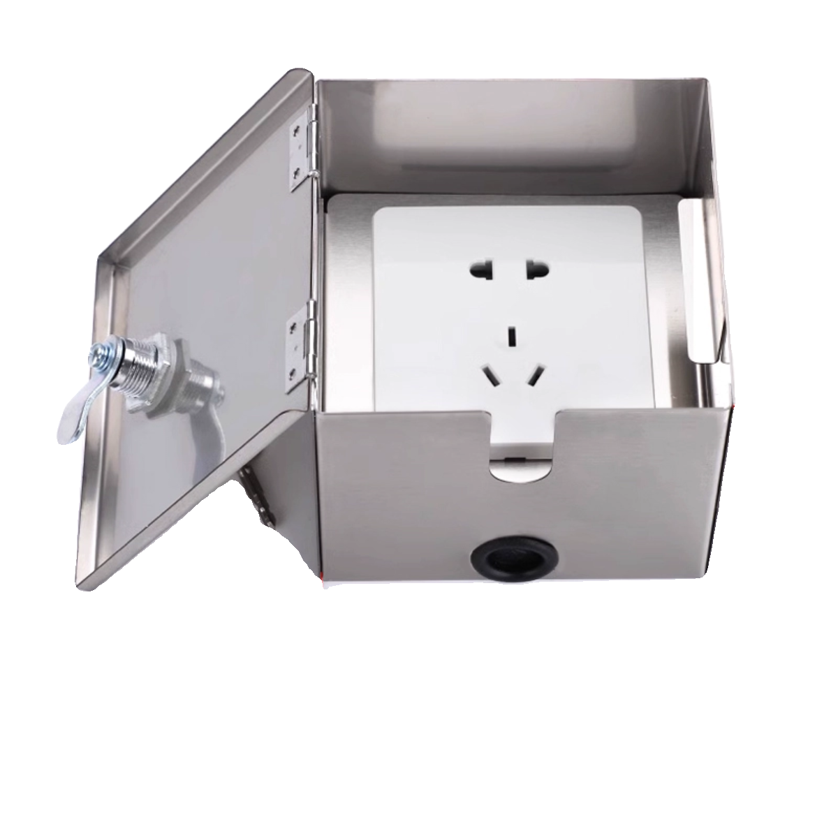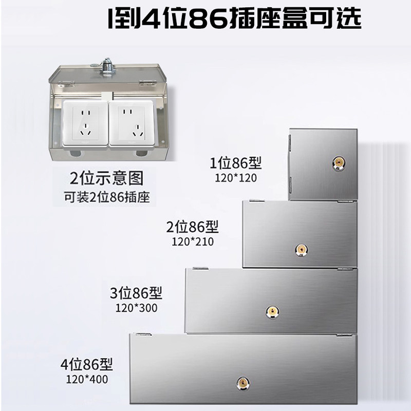 86型不锈钢插座盒带锁户外电动车充电防水防盗电室外配电箱防雨罩