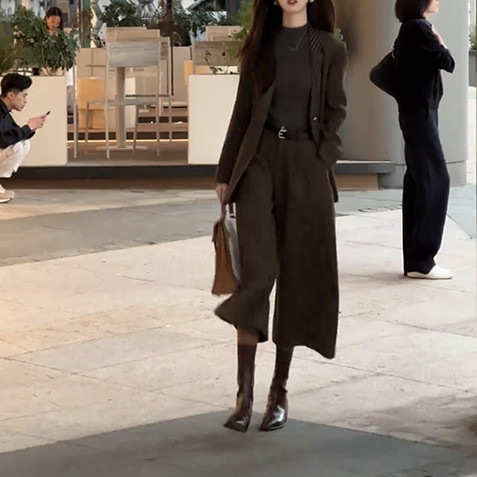 老钱风气质名媛时尚西装套装女2025秋冬新款气质外套阔腿裤两件套