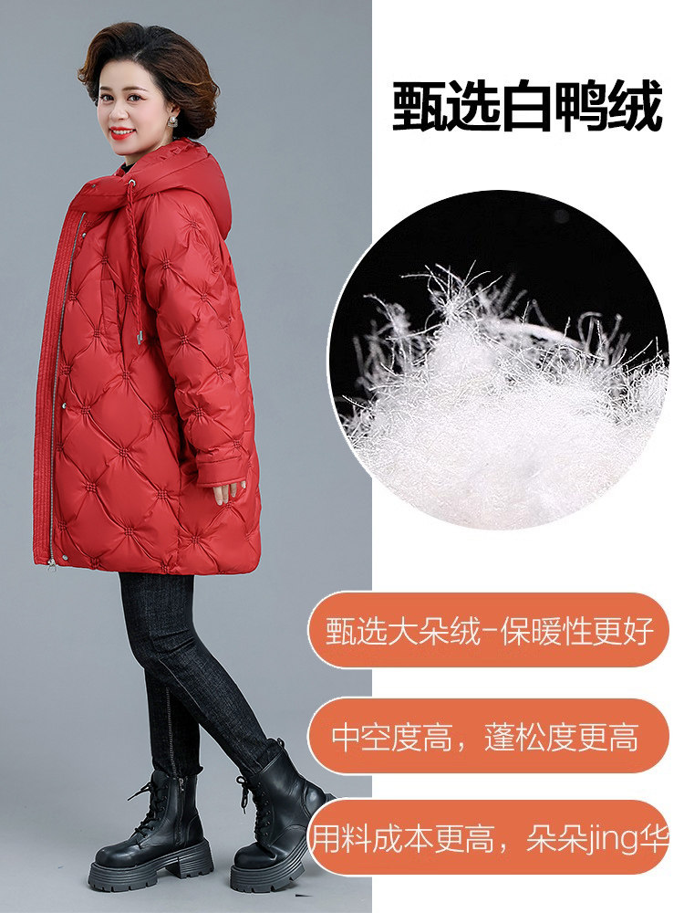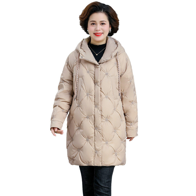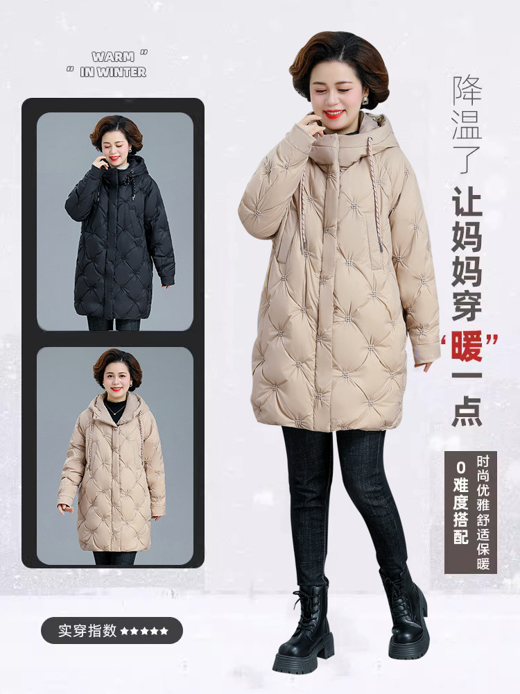 胖妈妈羽绒服中长款2025新款加厚棉袄中老年女冬装加肥加大码外套