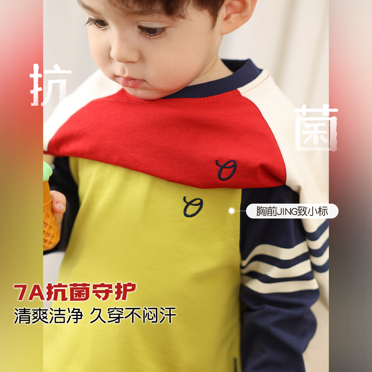 小O爸男婴童 宝宝长袖t恤春秋2025新款撞色A类纯棉婴儿帅气打底衫