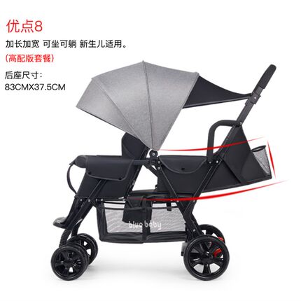 婴儿双胞胎推车可拆后座0-7岁大小宝宝二胎双人推车轻便折叠可躺