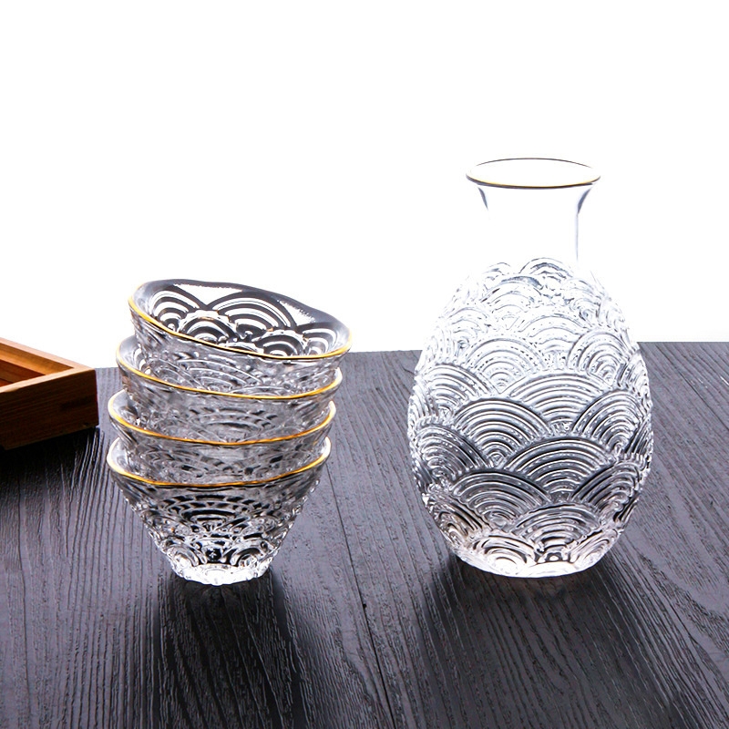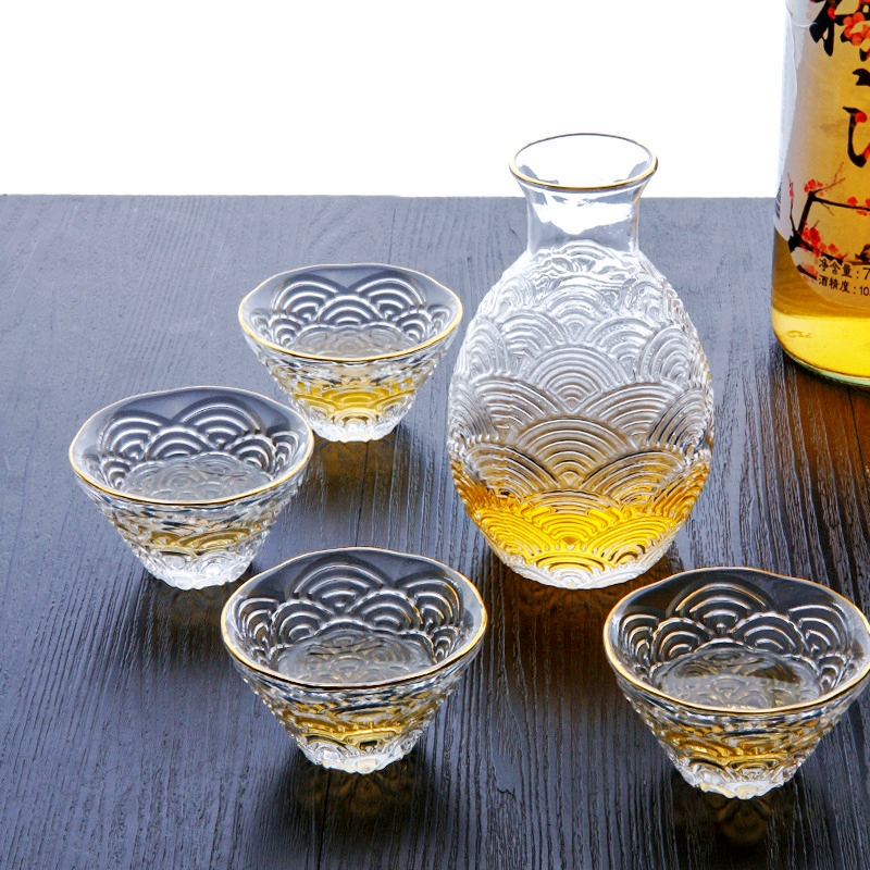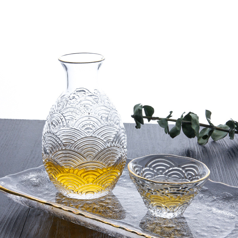 中式祥云玻璃锤纹小酒壶一口杯子小酒杯果酒清酒家用白酒杯分酒器