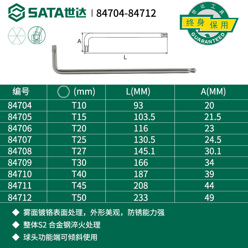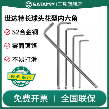 SATA世达特长内六角扳手球头花形米字梅花星型6棱扳手螺丝刀工具