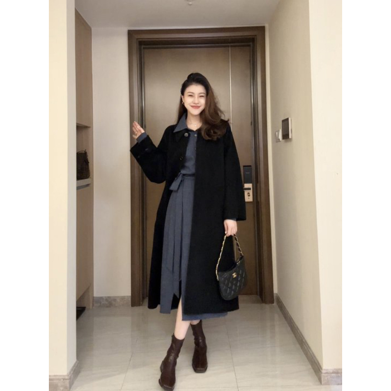 张阿星【帕米尔】 2025秋冬款法式气质名媛高级V领收腰衬衫连衣裙