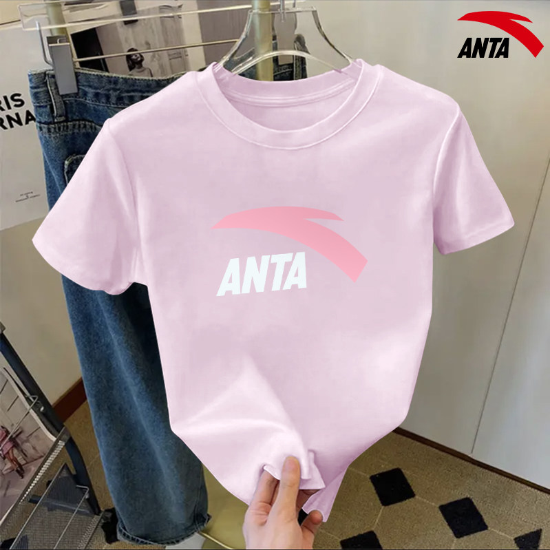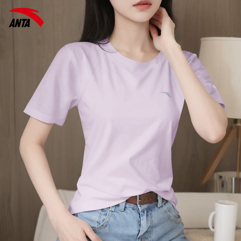 安踏短袖女t恤透气运动体恤夏季新款圆领半袖显瘦修身百搭上衣女