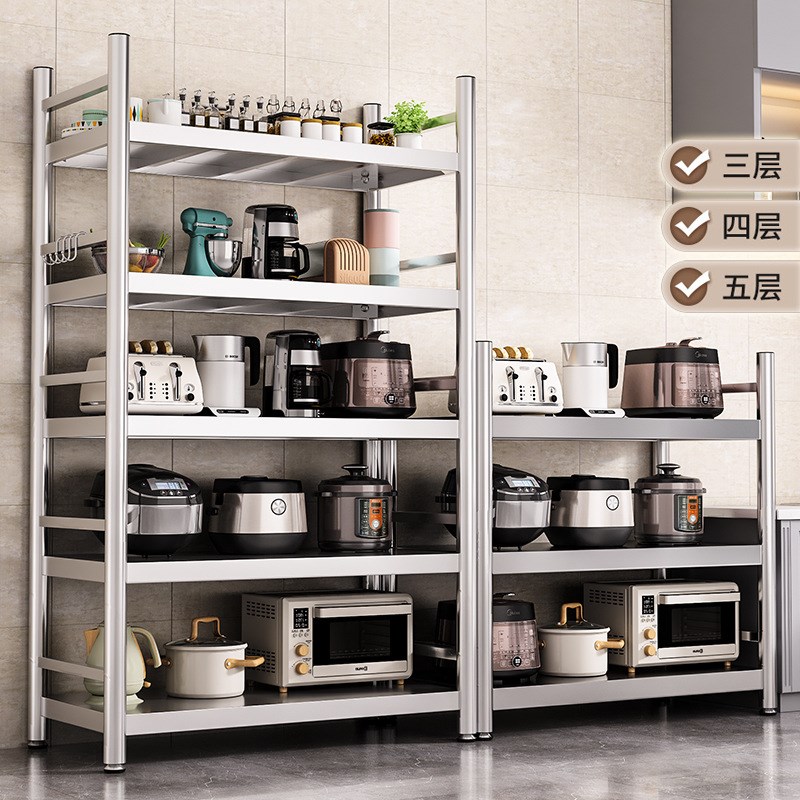 加厚加粗厨房置物架sus304不锈钢3o4收纳N微波炉落地三层家用架子