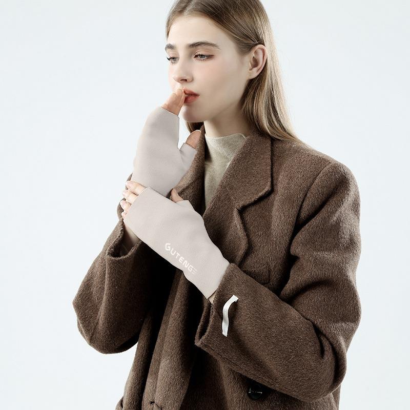 办公室打字手套秋冬季半指女款学生写字办公敲键盘露五指加绒保暖