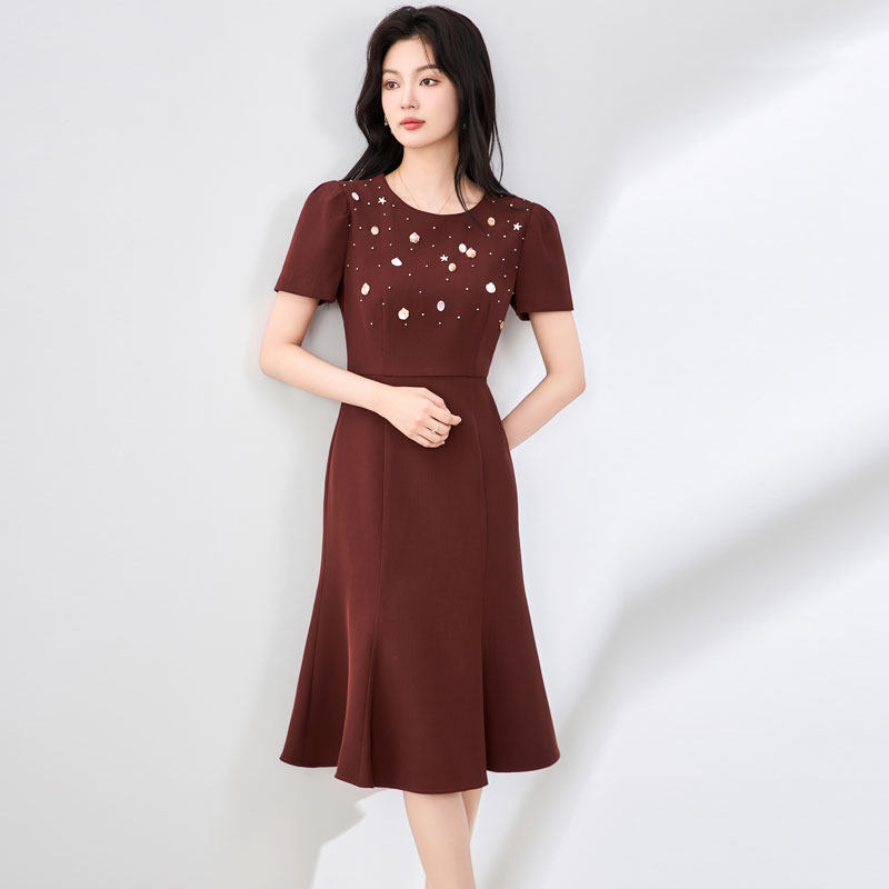 迪奥连衣裙女夏25新款高级感钉珠贝壳设计感礼服鱼尾裙法式中长裙