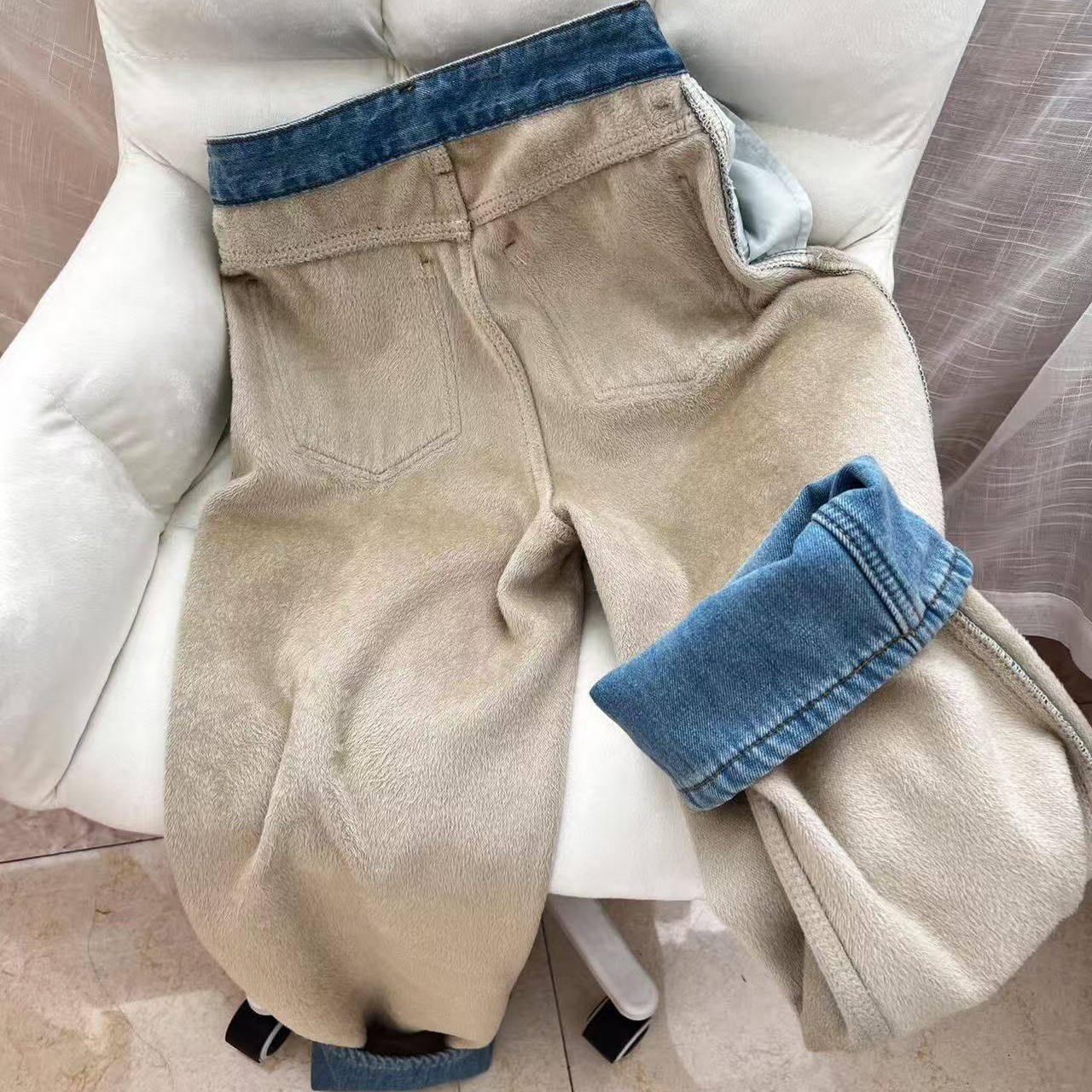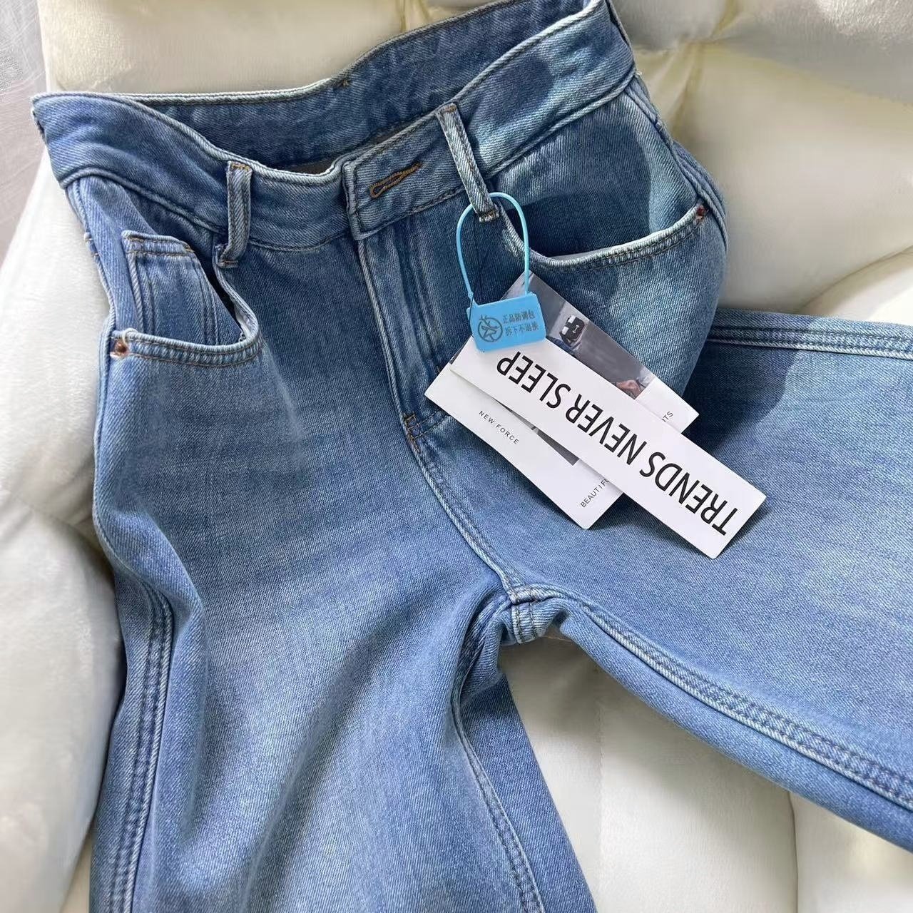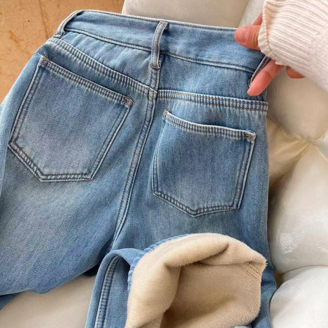 浅蓝色加绒牛仔裤高腰秋冬休闲