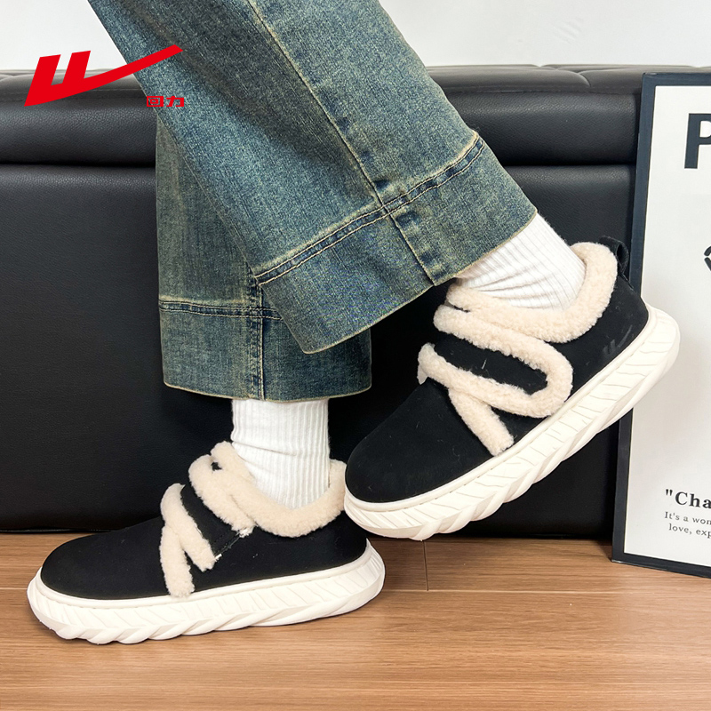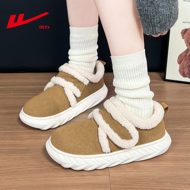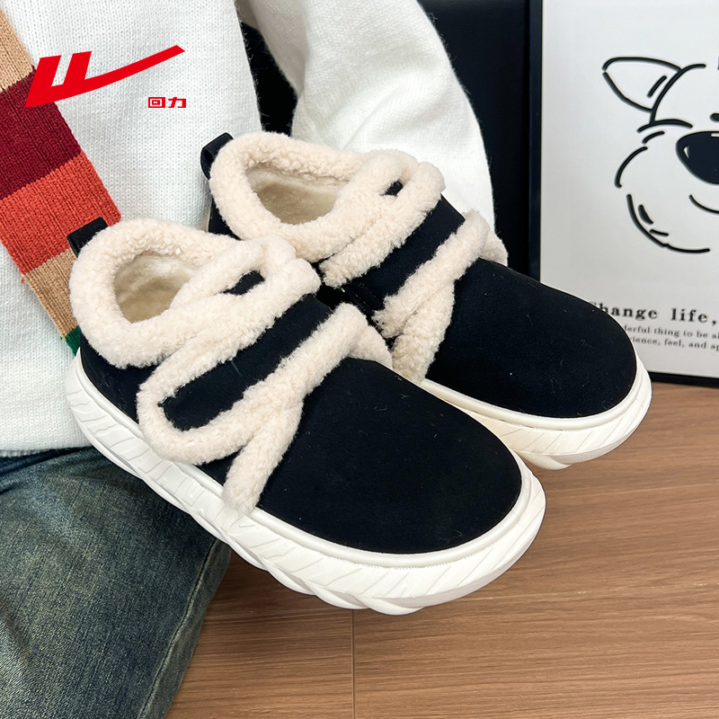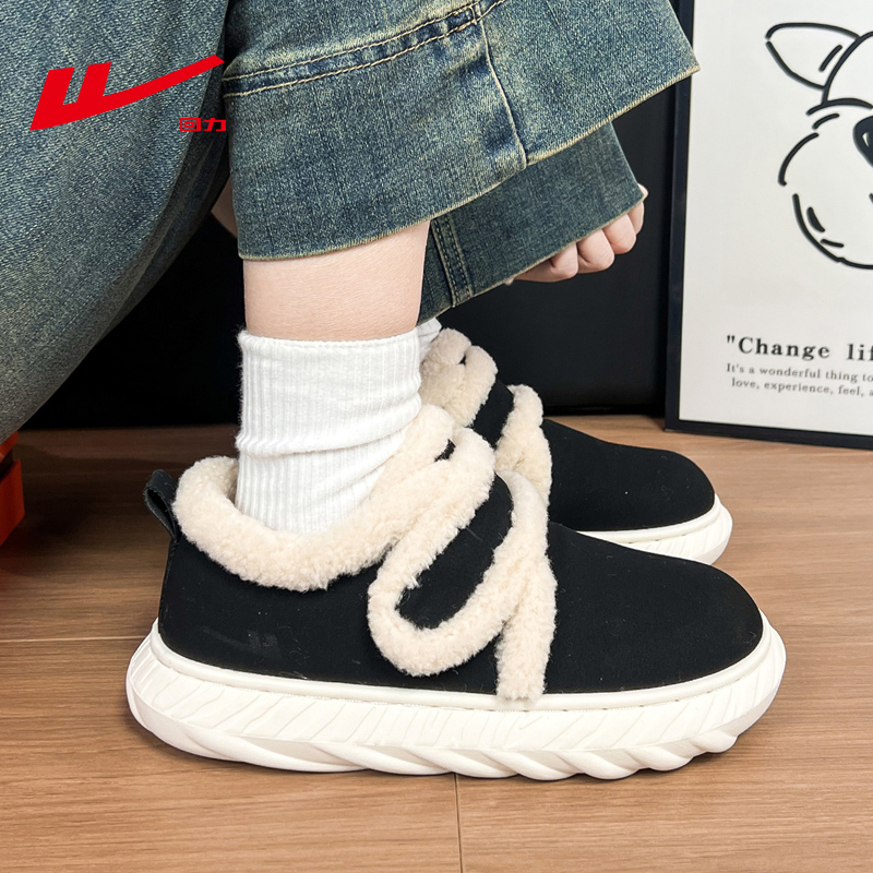 回力棉鞋女冬2025新款加绒女鞋子黑色保暖加厚雪地靴办公室毛毛鞋