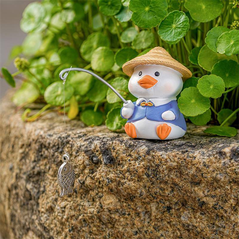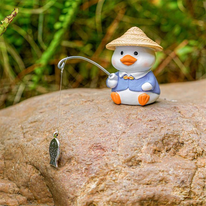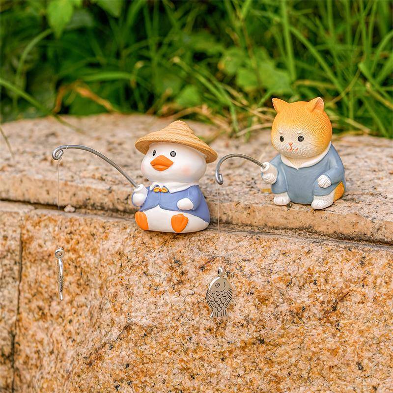 鱼缸造景可爱动物钓鱼摆件创意造景微景观装饰假山流水鱼池治愈系