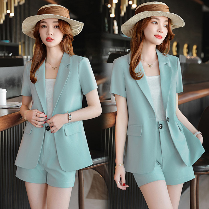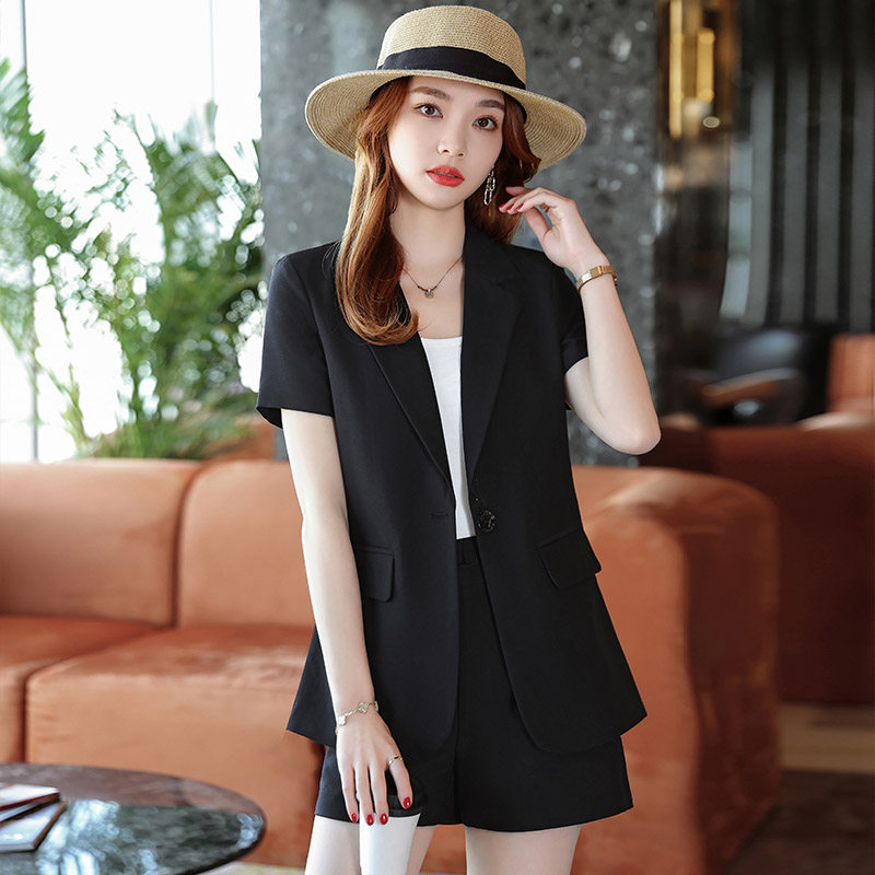 短袖西装套装女夏季2025新款小个子休闲高级感职业西服短裤两件套
