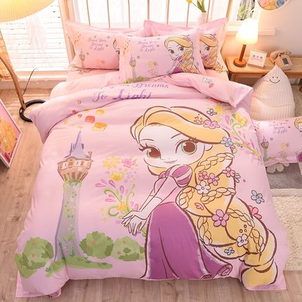迪士尼乐佩公主纯棉四件套女孩学生床笠款三件套全棉儿童床品定制
