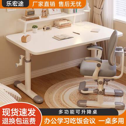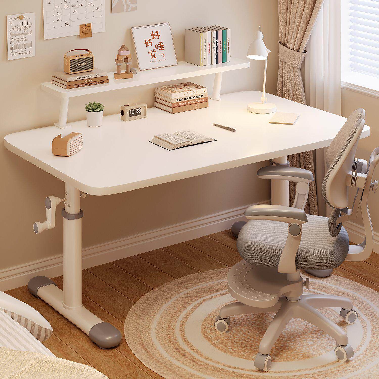手动升降白桌子加厚简约儿童学习书桌宿舍书房家用电脑桌桌椅套70