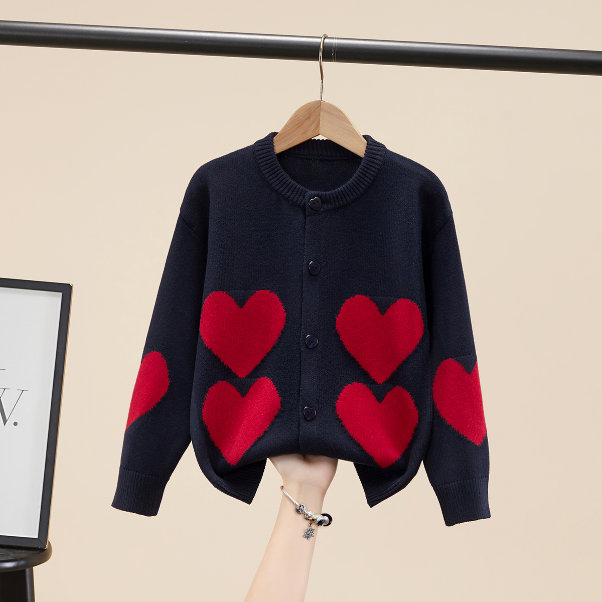女童开衫针织毛衣春秋季儿童宽松百搭洋气中大童爱心上衣外套薄款