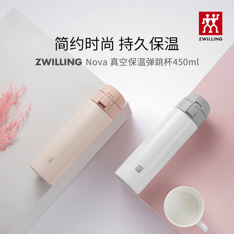 肖战同款德国双立人粉色高颜值保温咖啡杯保温杯弹跳杯不锈钢水杯