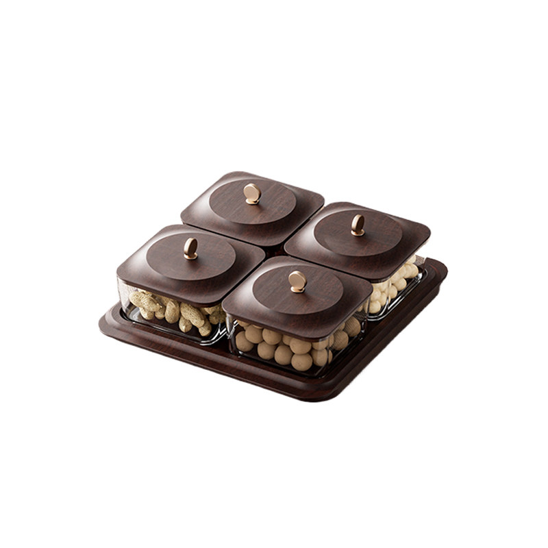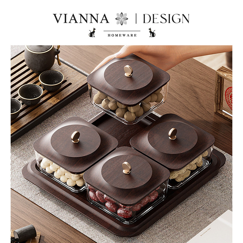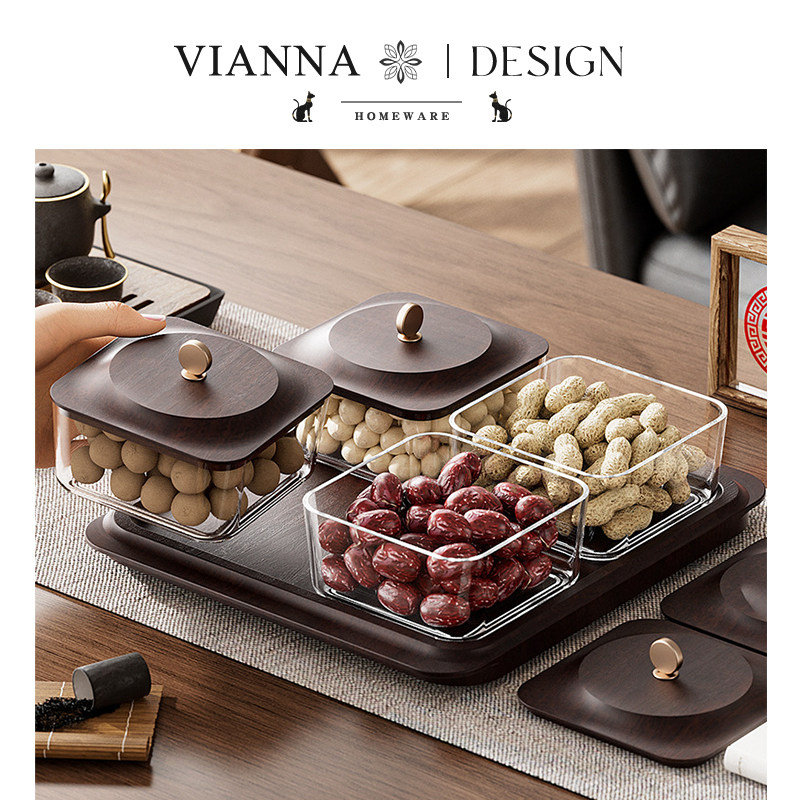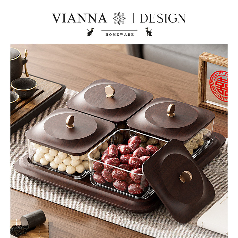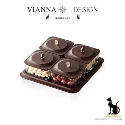 VIANNA丨木纹·UAHO高档干果盘四宫格糖果收纳盒家用客厅坚果盘