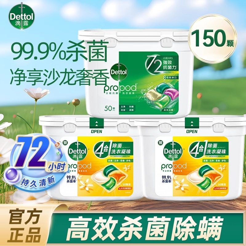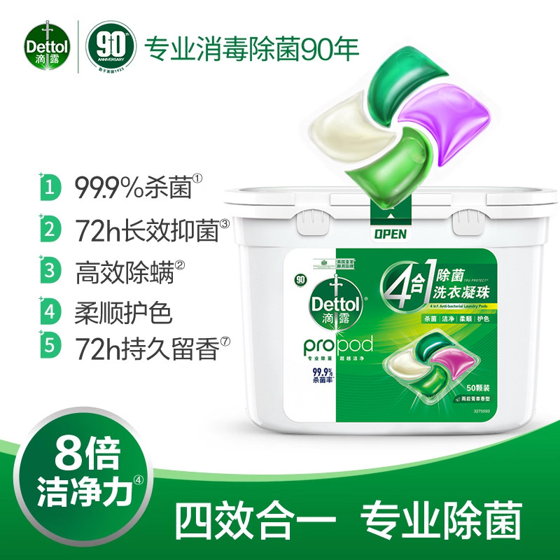 【高效清洁】滴露除菌洗衣凝珠留香珠杀菌持久留香护色柔顺洗衣液