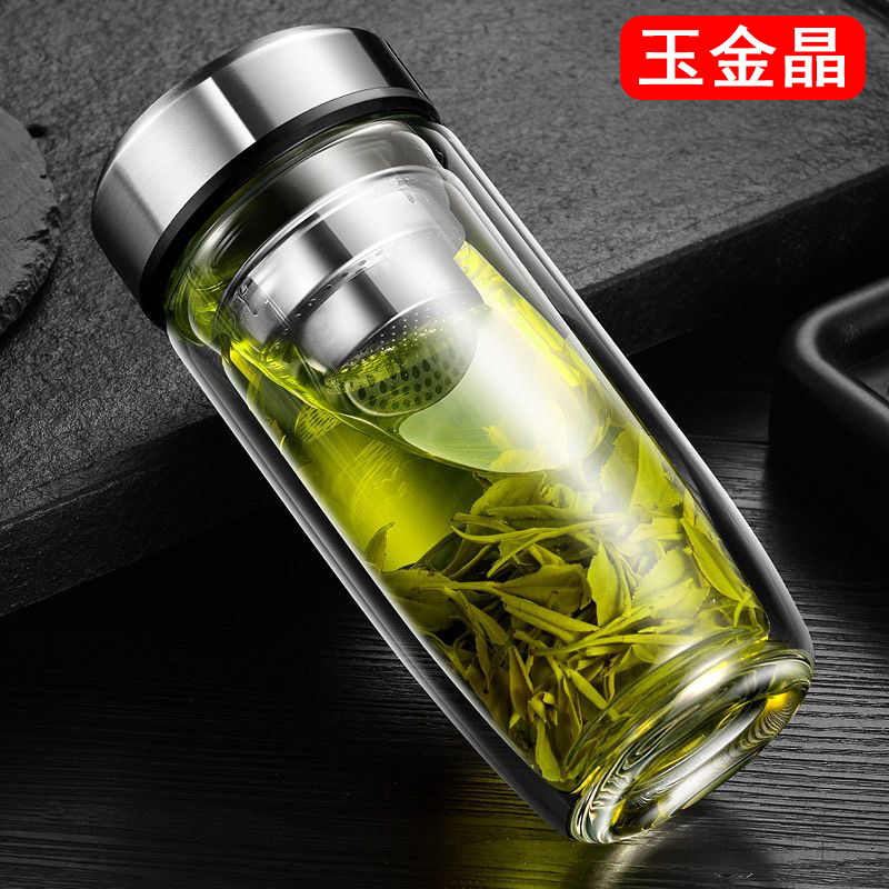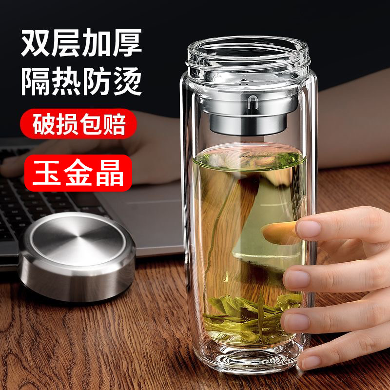玉金晶鹅蛋杯玻璃杯双层男女士高档车载水杯便携杯子滤网茶杯带盖