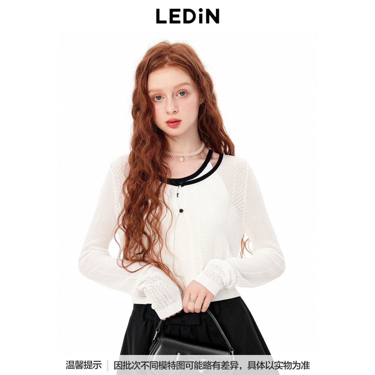 【商场同款】乐町秋季新款圆领镂空线开衫针织外套C1EDE3104