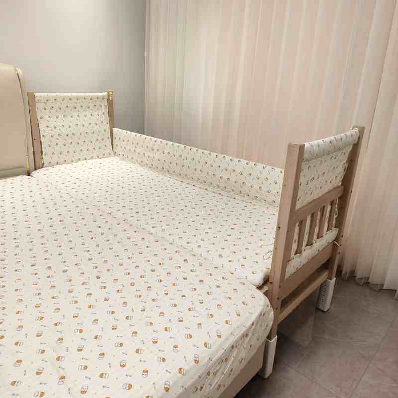 莱客森实木儿童拼接床带床围折叠护栏婴儿床加宽大床小宝宝延边床