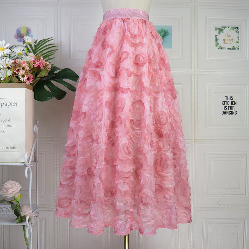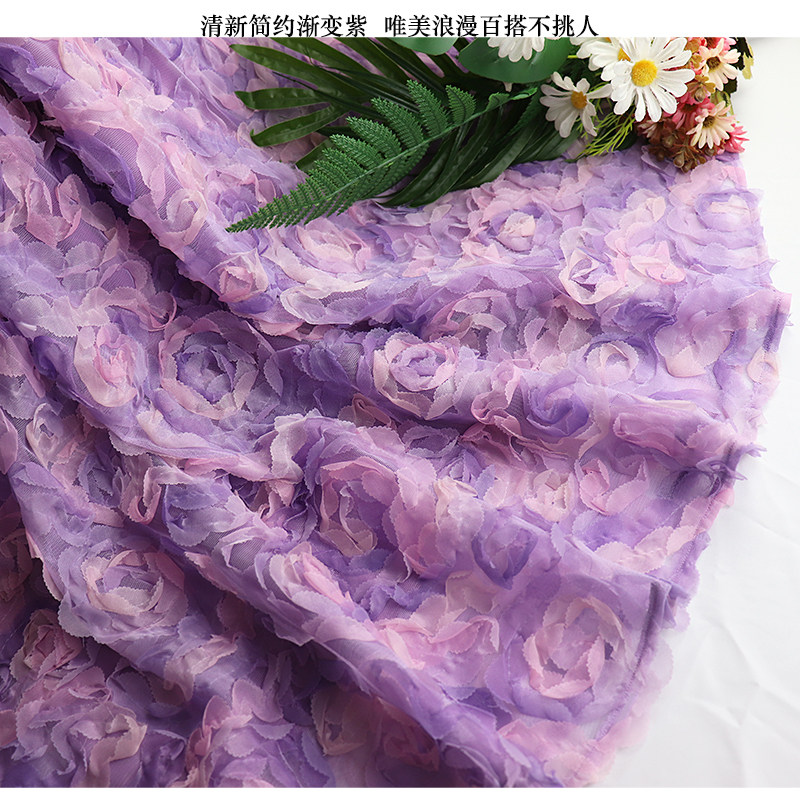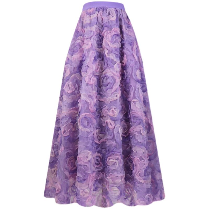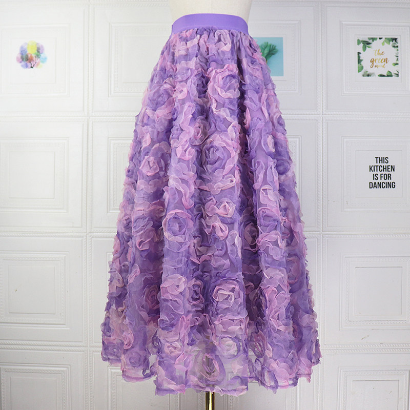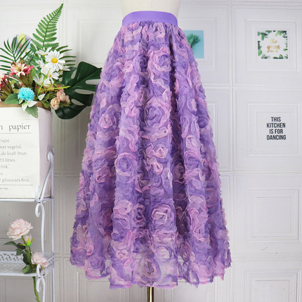 渐变紫玫瑰立体绣花网纱半身长裙