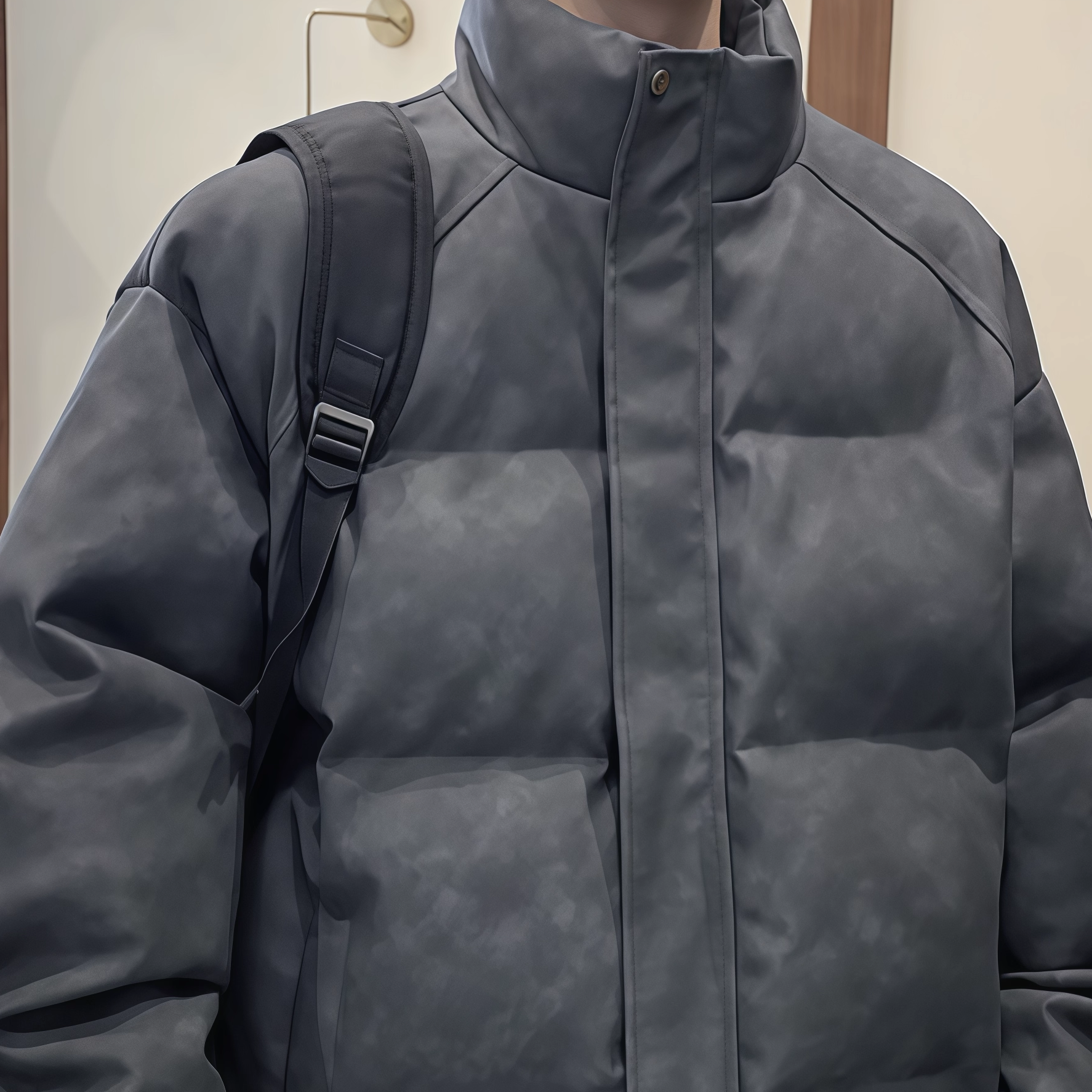 美拉德复古雾面pu皮羽绒棉服男款冬季宽松加厚保暖棉衣潮免洗外套