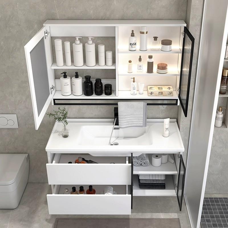 热销轻奢77/87/97/107/117/127cm陶瓷洗漱柜毛巾杆镜柜浴室柜组合